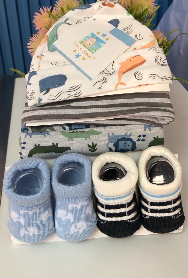 Offrez à votre bébé confort et protection avec ce pack bonnet et chaussettes, idéal pour garder sa tête et ses petits pieds bien au chaud.